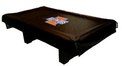 These nice looking billiard table covers are custom printed with a colorful college logo. This is a universal size cover and can cover a 7' or 8' table. Made with high grade vinyl and a soft backing. Please allow 1-2 weeks processing time prior to shipping.