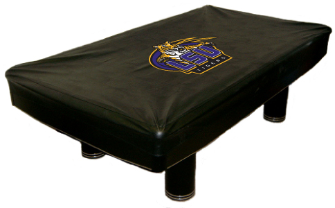 These nice looking billiard table covers are custom printed with a colorful college logo. This is a universal size cover and can cover a 7' or 8' table. Made with high grade vinyl and a soft backing. Please allow 1-2 weeks processing time prior to shipping.