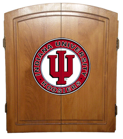 Scoring tables on inside of cabinet door and includes a standard Bristle Board.