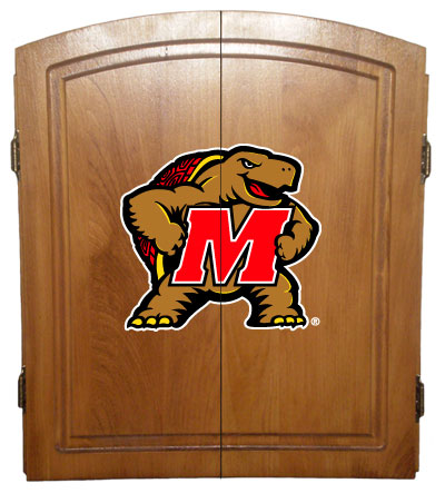 Scoring tables on inside of cabinet door and includes a standard Bristle Board.