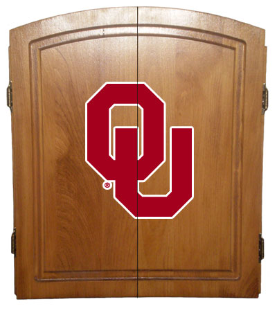 Scoring tables on inside of cabinet door and includes a standard Bristle Board.