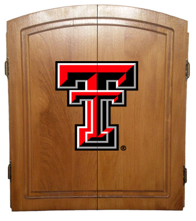 Scoring tables on inside of cabinet door and includes a standard Bristle Board.