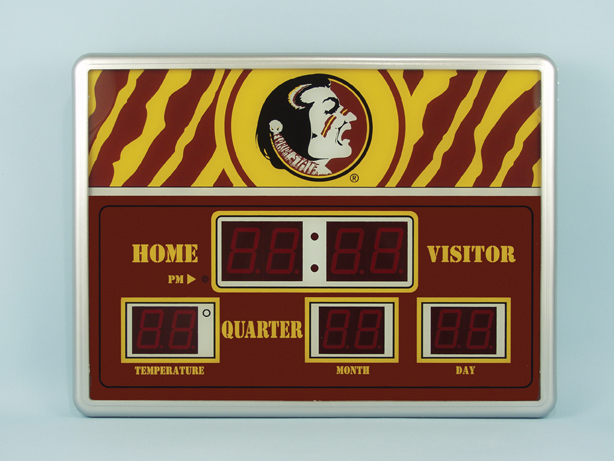This weather resistant, LED Scoreboard Clock shows the time, date, and temperature. Would look great in your den, bedroom, gameroom, or bar. Plugs into the wall and measures 19"x14"x2".