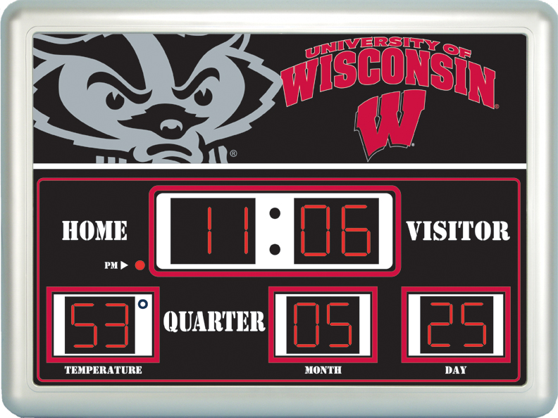 This weather resistant, LED Scoreboard Clock shows the time, date, and temperature. Would look great in your den, bedroom, gameroom, or bar. Plugs into the wall and measures 19"x14"x2".