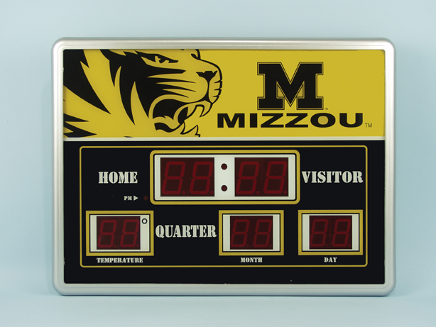 This weather resistant, LED Scoreboard Clock shows the time, date, and temperature. Would look great in your den, bedroom, gameroom, or bar. Plugs into the wall and measures 19"x14"x2".