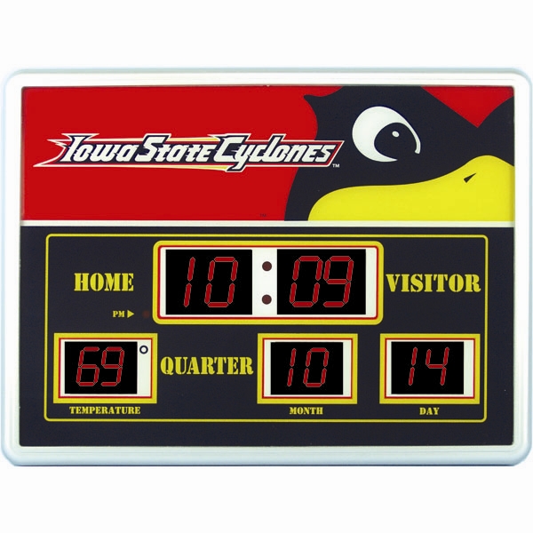 This weather resistant, LED Scoreboard Clock shows the time, date, and temperature. Would look great in your den, bedroom, gameroom, or bar. Plugs into the wall and measures 19"x14"x2".