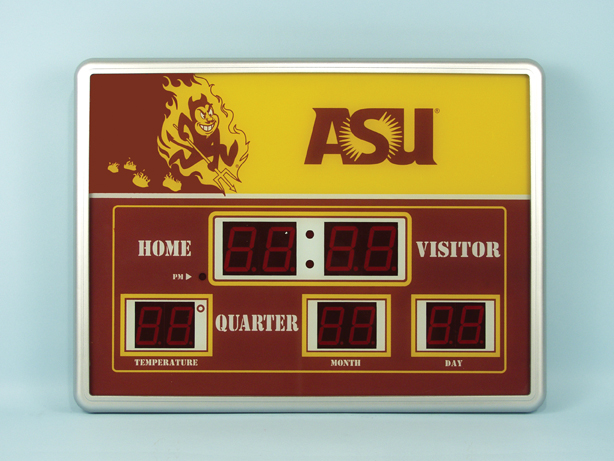 This weather resistant, LED Scoreboard Clock shows the time, date, and temperature. Would look great in your den, bedroom, gameroom, or bar. Plugs into the wall and measures 19"x14"x2".