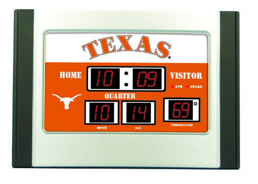This is a cool looking mini-sized alarm scoreboard clock. Shows the time, date, and temperature and features eight different alarm settings. Measures 6.25"x9.5"x3.5" . Normally ships in 3-5 business days.