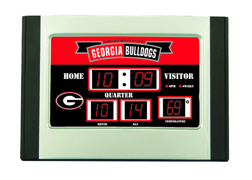 This is a cool looking mini-sized alarm scoreboard clock. Shows the time, date, and temperature and features eight different alarm settings. Measures 6.25"x9.5"x3.5" . Normally ships in 3-5 business days.