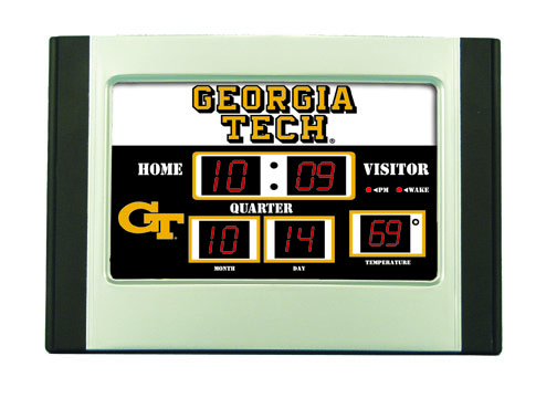 This is a cool looking mini-sized alarm scoreboard clock. Shows the time, date, and temperature and features eight different alarm settings. Measures 6.25"x9.5"x3.5" . Normally ships in 3-5 business days.
