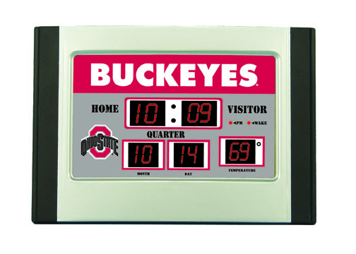 This is a cool looking mini-sized alarm scoreboard clock. Shows the time, date, and temperature and features eight different alarm settings. Measures 6.25"x9.5"x3.5" . Normally ships in 3-5 business days.