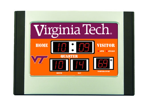 This is a cool looking mini-sized alarm scoreboard clock. Shows the time, date, and temperature and features eight different alarm settings. Measures 6.25"x9.5"x3.5" . Normally ships in 3-5 business days.