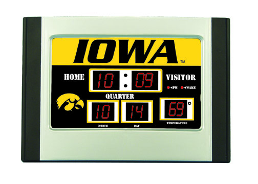 This is a cool looking mini-sized alarm scoreboard clock. Shows the time, date, and temperature and features eight different alarm settings. Measures 6.25"x9.5"x3.5" . Normally ships in 3-5 business days.