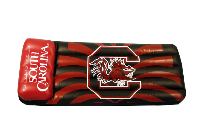 University of South Carolina Inflatable Swimming Pool Float This 66"x27"x5" Pool Float and Air Mattress is perfect for the beach, pool, or lake. It comes with built in grommets to tie up the lounger. Sturdy I-Beam construction features .25mm polyvinyl and built in angled air pillow with separate air valve.