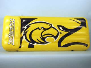 Southern Mississippi Inflatable Swimming Pool Float This 66"x27"x5" Pool Float and Air Mattress is perfect for the beach, pool, or lake. It comes with built in grommets to tie up the lounger. Sturdy I-Beam construction features .25mm polyvinyl and built in angled air pillow with separate air valve.