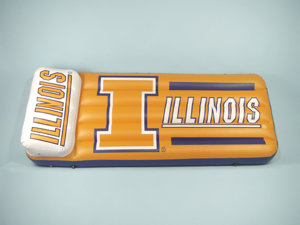 University of Illinois Inflatable Swimming Pool Float This 66"x27"x5" Pool Float and Air Mattress is perfect for the beach, pool, or lake. It comes with built in grommets to tie up the lounger. Sturdy I-Beam construction features .25mm polyvinyl and built in angled air pillow with separate air valve.