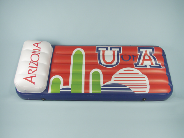 University of Arizona Inflatable Swimming Pool Float This 66"x27"x5" Pool Float and Air Mattress is perfect for the beach, pool, or lake. It comes with built in grommets to tie up the lounger. Sturdy I-Beam construction features .25mm polyvinyl and built in angled air pillow with separate air valve.