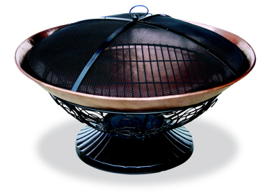 30" Outdoor Fireplace with Copper Bowl with Decorative Black Iron Stand