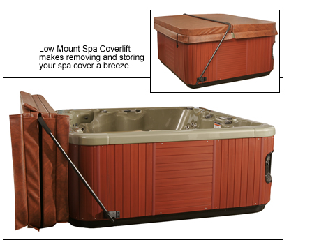 Click here to see the spa cover lifter assembly instructionsThe hottub Low Mount Cover Lift is the perfect answer for lifting your spa cover with ease. Constructed of the highest quality powder-coated steel, the lift will not rust or corrode over time.