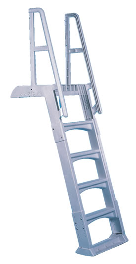 Our rigid in-pool ladder makes entering and exiting your pool a breeze. Our aboveground swimming pool ladder is adjustable to fit above-ground pools from 48” to 54” in depth. The top platform allows for extra safety and protects your pool’s top rail from damage. Our ladder is super-strong and made from maintenance-free resin. It can accommodate up to a 300 lb. swimmer. Double handrails extend down toward the water to make climbing easy for children and adults. To protect young swimmers, our ladders have been redesigned to protect them from becoming entangled behind the ladder. Our in-pool ladder meets all national and local codes for swimmer entrapment. The ladder is easy to assemble and comes complete with deck mounting flanges. Backed by a 5-Year Manufacturer Warranty. 9"x36" optional vinyl liner protective pad.