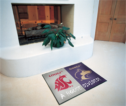 University of Washington Versus Washington State A House Divided RugCustom made, these 34" x 44.5" rugs will look great in your home.or office Chromojet printing allows full color penetration down the tuft of yarn.