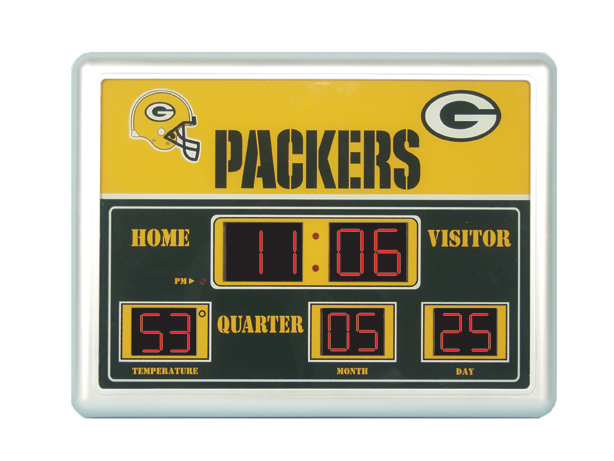 This weather resistant, LED Scoreboard Clock shows the time, date, and temperature. Would look great in your den, bedroom, gameroom, or bar. Plugs into the wall and measures 19"x14"x2".
