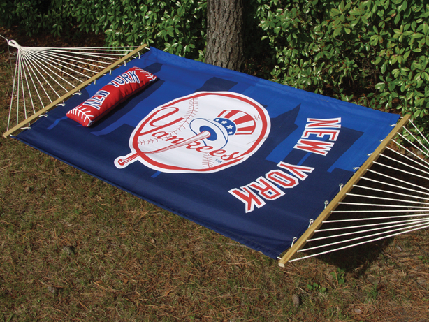 There's room for two in these officially licensed, big 55"x82", 13' total length hammocks. Made of durable Oxford Polyester, they are weatherproof and mildew resistant. Comes with team logo pillow. Typically ships in 3-5 business days.