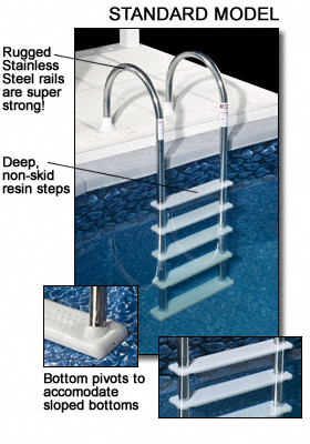 This top quality in-pool ladder makes exiting and entering you pool easier than ever before. Super-strong stainless steel rails allow the ladder to easily accommodate up to 225 lbs.