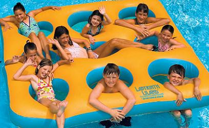 Labyrinth Island. Large enough for eight, your kids will swim the day away coming up from underwater and on to the island. Heave gauge PVC will hold up to rough play. Add a new dimension to the pool this summer with