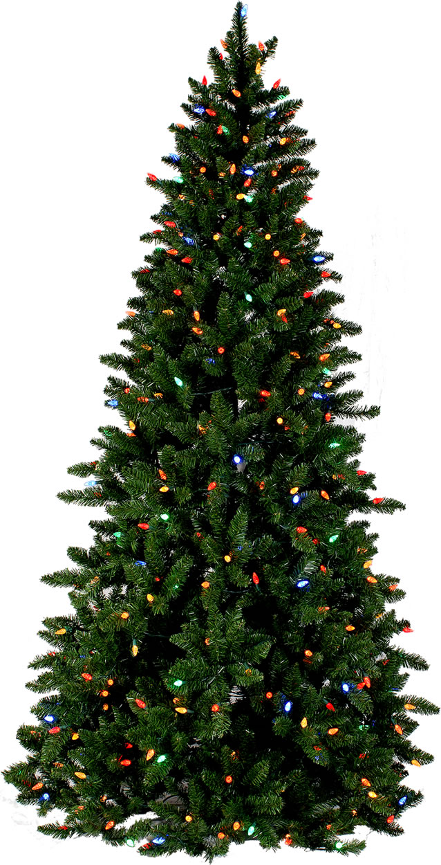 Prelit Fake Spruce Christmas Tree has a slightly narrow profile and thick branch coverage. Its vivid multicolored LED lights are for brighter than ordinary tree lights so this tree really looks special. Not only are LED lights much brighter, they are energy efficient and they last up to 100,000 hours. The LED Spruce features: