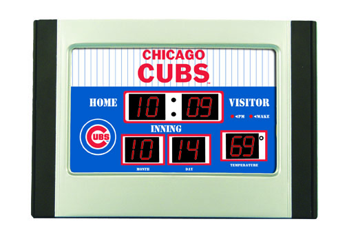 This is a cool looking mini-sized alarm scoreboard clock. Shows the time, date, and temperature and features eight different alarm settings. Measures 6.25"x9.5"x3.5"