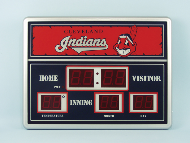 This weather resistant, LED Scoreboard Clock shows the time, date, and temperature. Would look great in your den, bedroom, gameroom, or bar. Plugs into the wall and measures 19"x14"x2".
