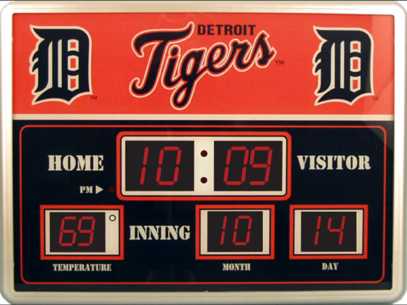 This weather resistant, LED Scoreboard Clock shows the time, date, and temperature. Would look great in your den, bedroom, gameroom, or bar. Plugs into the wall and measures 19"x14"x2".