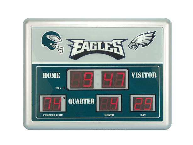 This weather resistant, LED Scoreboard Clock shows the time, date, and temperature. Would look great in your den, bedroom, gameroom, or bar. Plugs into the wall and measures 19"x14"x2".