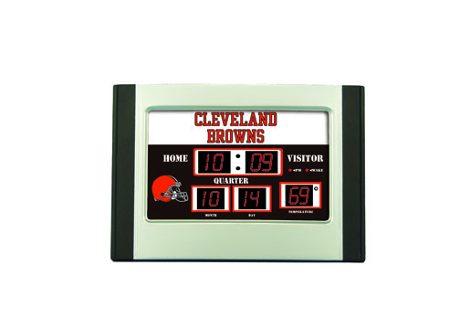 This is a cool looking mini-sized alarm scoreboard clock. Shows the time, date, and temperature and features eight different alarm settings. Measures 6.25"x9.5"x3.5"