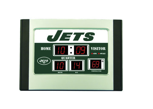 This is a cool looking mini-sized alarm scoreboard clock. Shows the time, date, and temperature and features eight different alarm settings. Measures 6.25"x9.5"x3.5"