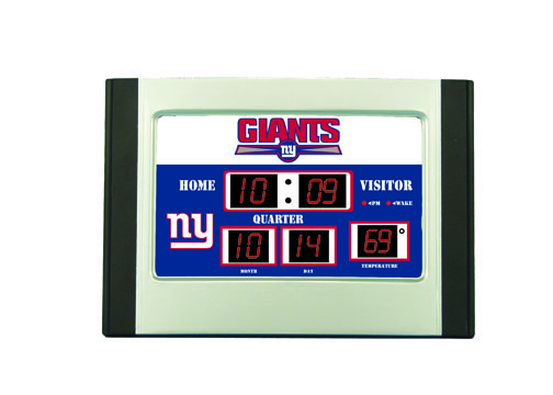 This is a cool looking mini-sized alarm scoreboard clock. Shows the time, date, and temperature and features eight different alarm settings. Measures 6.25"x9.5"x3.5"