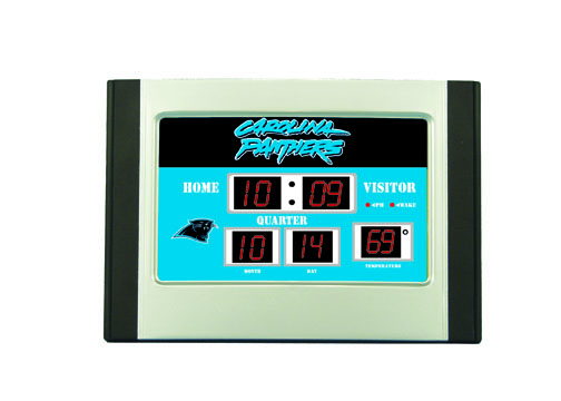 This is a cool looking mini-sized alarm scoreboard clock. Shows the time, date, and temperature and features eight different alarm settings. Measures 6.25"x9.5"x3.5"