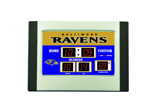 This is a cool looking mini-sized alarm scoreboard clock. Shows the time, date, and temperature and features eight different alarm settings. Measures 6.25"x9.5"x3.5"