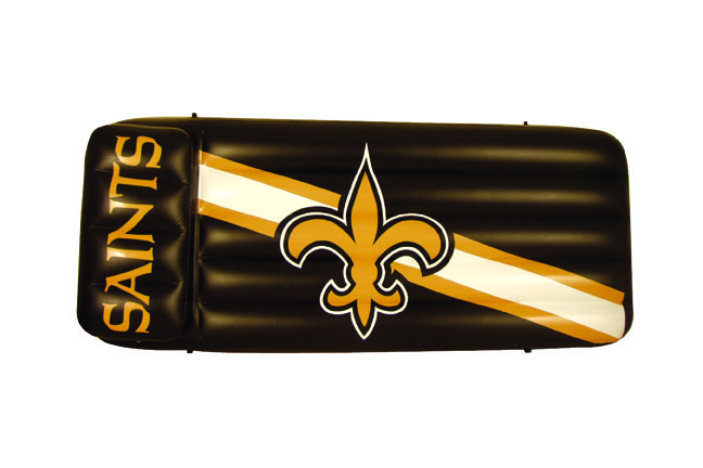 New Orleans Saints Inflatable Swimming Pool Float This 66"x27"x5" Pool Float and Air Mattress is perfect for the beach, pool, or lake. It comes with built in grommets to tie up the lounger. Sturdy I-Beam construction features .25mm polyvinyl and built in angled air pillow with separate air valve.