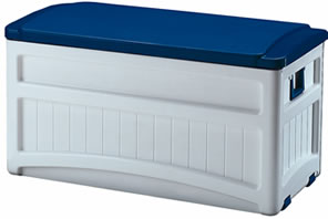 Store all of your pool gear neatly in this handy pool storage box. Made of durable resins, this storage box will endure many seasons as it keeps your pool gear dry and out of the sun. Great for pool toys, chemicals, hoses or even patio cushions in the fall. The Pool Box will eliminate the clutter. Blue and white color coordinates with pool accessories and integral wheels make the pool box easy to move. Easy to assemble with no tools required. Large 73 gallon capacity measures 46” L x 22” W x 23” H.