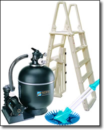 The Standard Equipment Package is available two different sized systems: an 18” tank with 1-hp pump (for pools up to 24’ round) and a 21” tank with 1-1/2 hp pump (for pools over 24’ round). Both systems come complete with base, multi-port valve, and hose connections. Put Sta-Rite®’s advanced technology to work on your pool this summer.