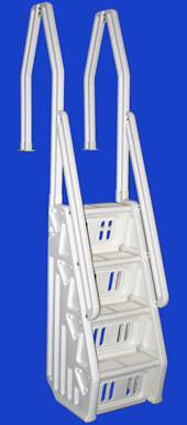 Adjustable deck flanges allow this premium in-pool ladder to fit almost any deck. Double extended handrails allow even small children to easily exit the pool. Side wings protect kids from becoming entrapped under the ladder, preventing accidental drowning. The walkway has been widened by 3 1/2" for this season to allow for easier entry and exit. These side wings are also slotted for better water flow and chemical distribution throughout the pool. The ladder is easy to assemble with its unique snap-lock construction.