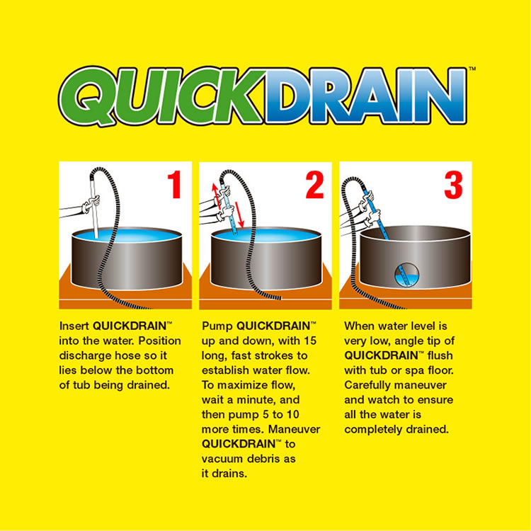 Not only will Quick Drain empty your spa, but also allows you to vacuum up debris as you drain, eliminating the hassle of toweling debris. It will remove rocks, glass, leaves, and sand. We also offer an extension discharge hose to allow you to direct water up to 24 feet away from your spa.