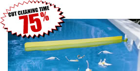 This skimmer extension stops leaves and debris in their path and directs them into your skimmer - cutting cleaning time by 75%! Constructed of corrosion-resistant ABS plastic, the Skim-It fits most above-ground and in-ground skimmers. Installs in just seconds without tools.