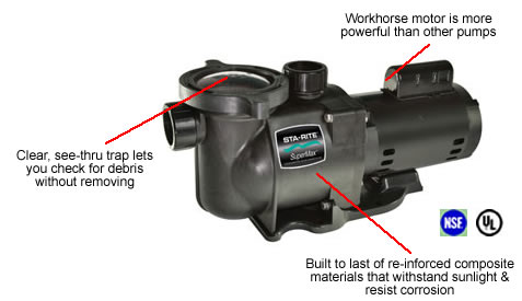 This powerful workhorse is the perfect match for any pool owner that wants maximum performance combined with whisper quiet operation. Super Max’s superior hydraulic design allows the pump to move more water and lower operating costs. Powered by an energy efficient commercial grade motor, Super Max™ will keep your pool water flowing at optimum rates. Because this pump has power to spare, it can keep your pool crystal clear and have plenty of suction to run automatic cleaners without costly booster pumps.