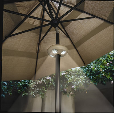 The umbrella light combines a strong light source with a self-adjusting design that fits almost all umbrella poles. When fully charged, the umbrella light will provide light for upwards of 6 hours.