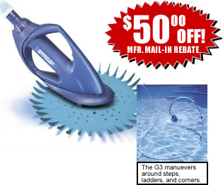 The G3 is quieter - Unlike other automatic cleaners that have "flapper" valves that make annoying hammering noises, the G3™ is quick, efficient and quiet. This powerful cleaner is backed by a 2-Year manufacturer warranty and comes complete with 39-feet of hose.