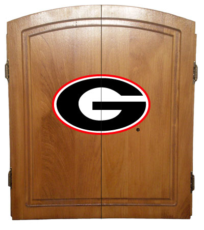 Scoring tables on inside of cabinet door and includes a standard Bristle Board.