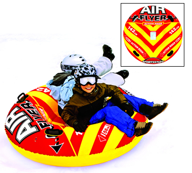 This huge classic round snow tube has room for 2 with its 56” diameter. Oversized PVC molded handles leave plenty of room for mittens. Air Flyer is made of Heavy Duty PVC material with Cold-Crack additive. Features include heat sealed seams & speed safety valve for super fast inflation & deflation. Make the most of your snow days this winter with our king sized Air Flyer!